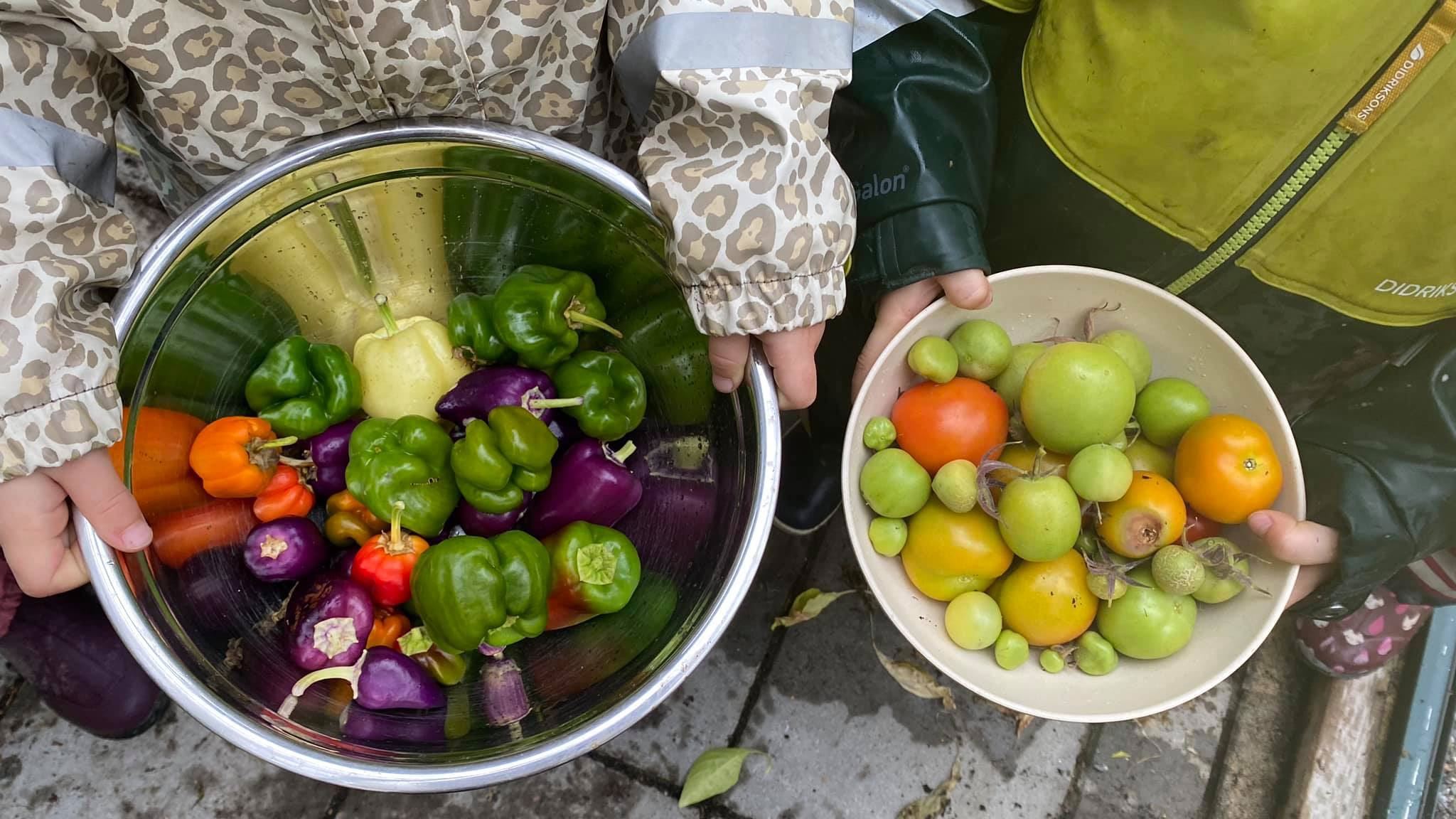 Maten er sunn og for det meste økologisk. Vi dyrker også egne grønnsaker i barnehagen. Brødet baker vi selv og barna er med å bake regelmessig.